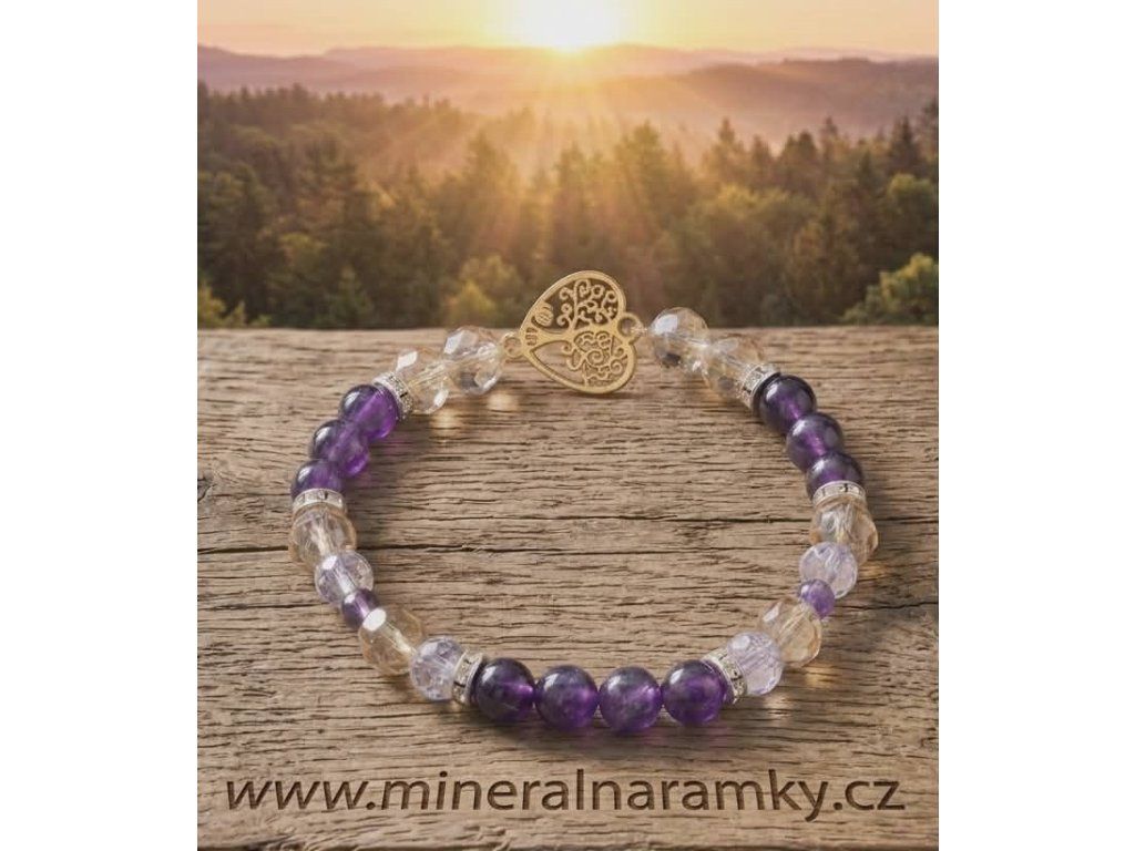 Ametyst je kamenem klidu a intuice. Pomáhá zahánět stres, negativní emoce a nastoluje vnitřní rovnováhu. Často se používá pro podporu soustředění a meditace. Křišťál působí jako univerzální harmonizátor. Čistí energii, zbavuje blokád a nabíjí svého nositele novou životní silou.