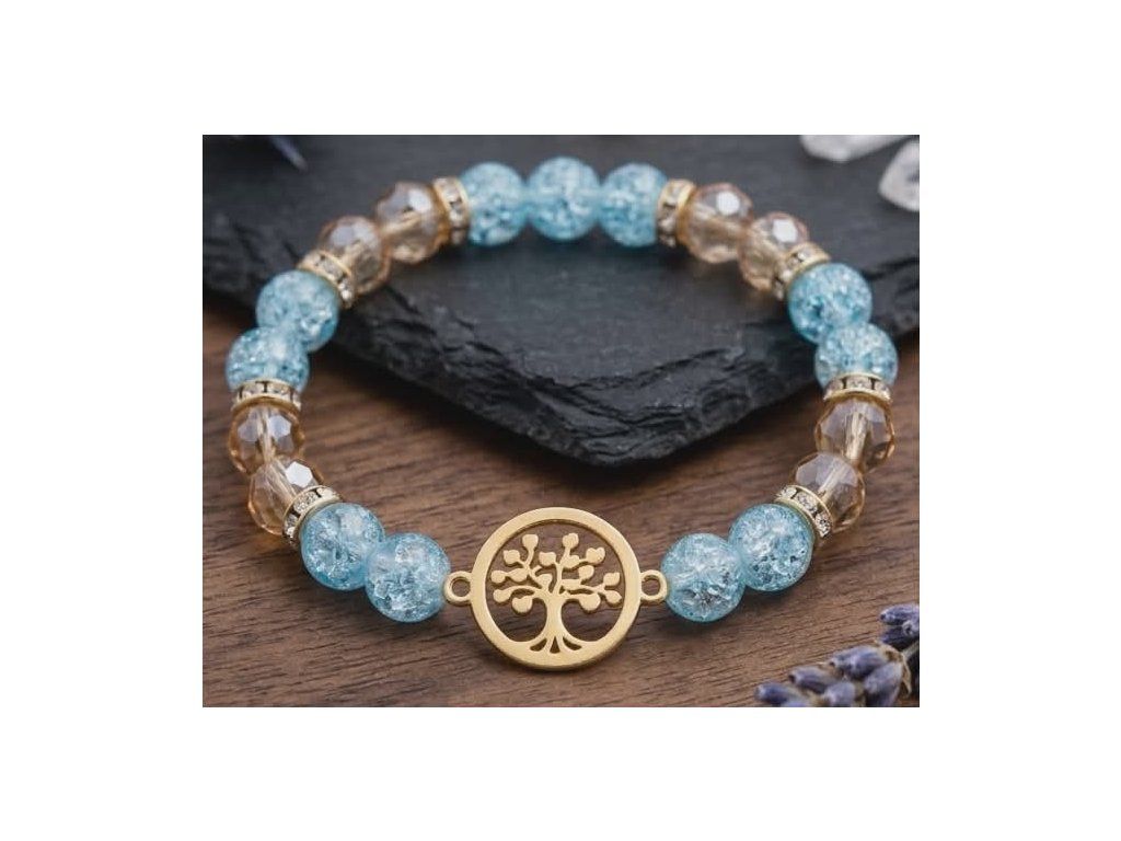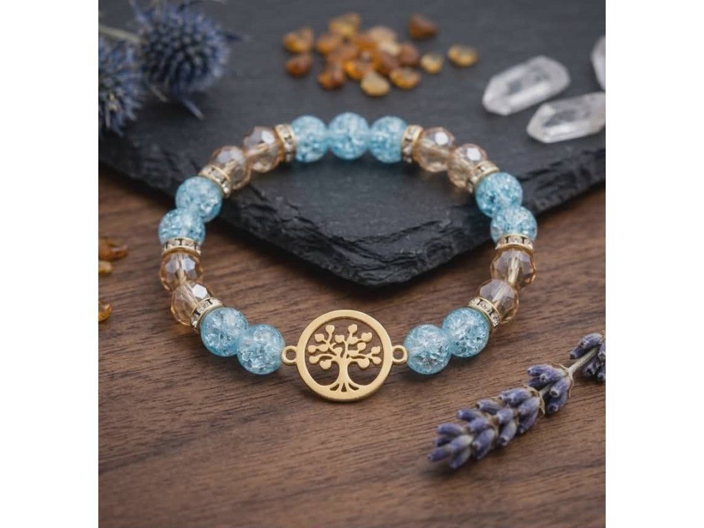 Dámský náramek "Harmonie & Růst" – Praskaný Křišťál, Zlaté Sklo a Strom Života