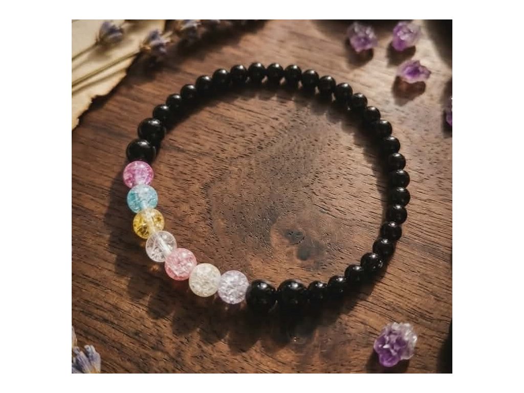 Jeho černo-čirá estetika je naprosto univerzální – skvěle doplní elegantní hodinky, stříbrné řetízky nebo jej můžete vrstvit s dalšími jemnými náramky pro moderní „stacking“ vzhled.