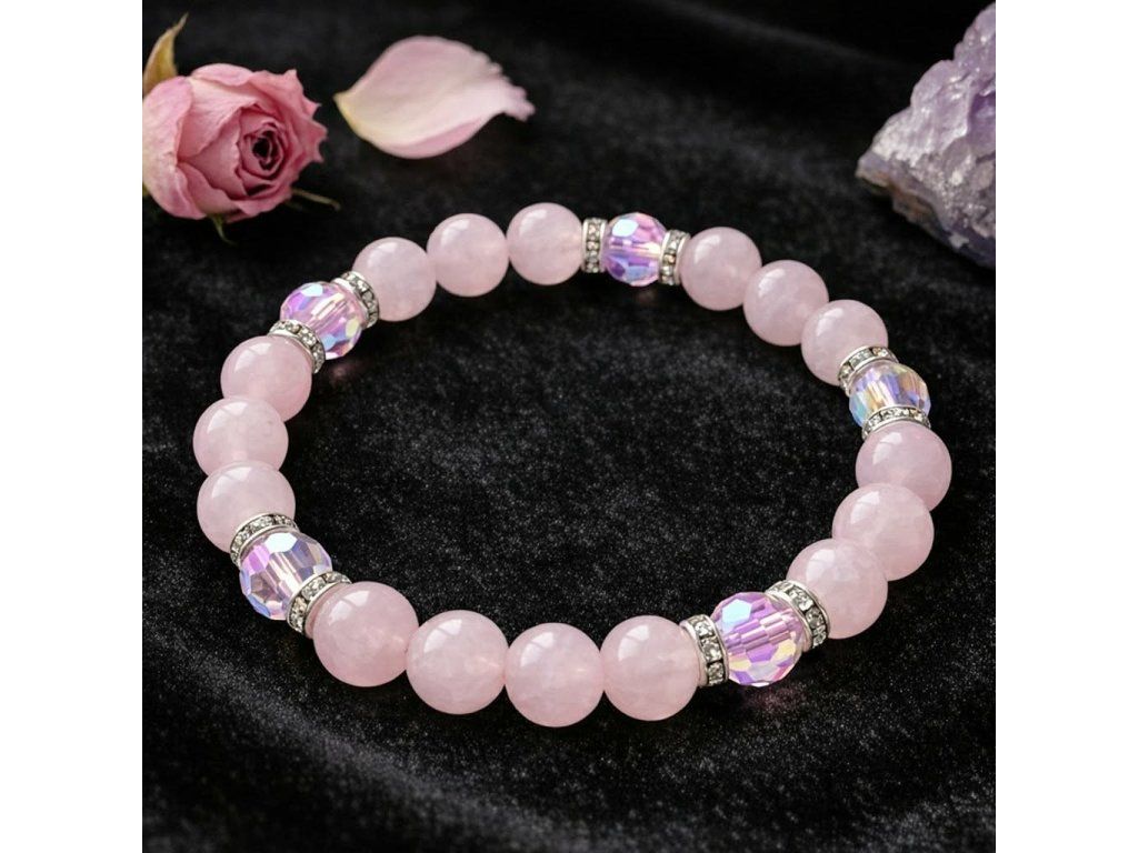 Náramek „Něžná Harmonie“ – Růženín & Křišťálový AB Efekt